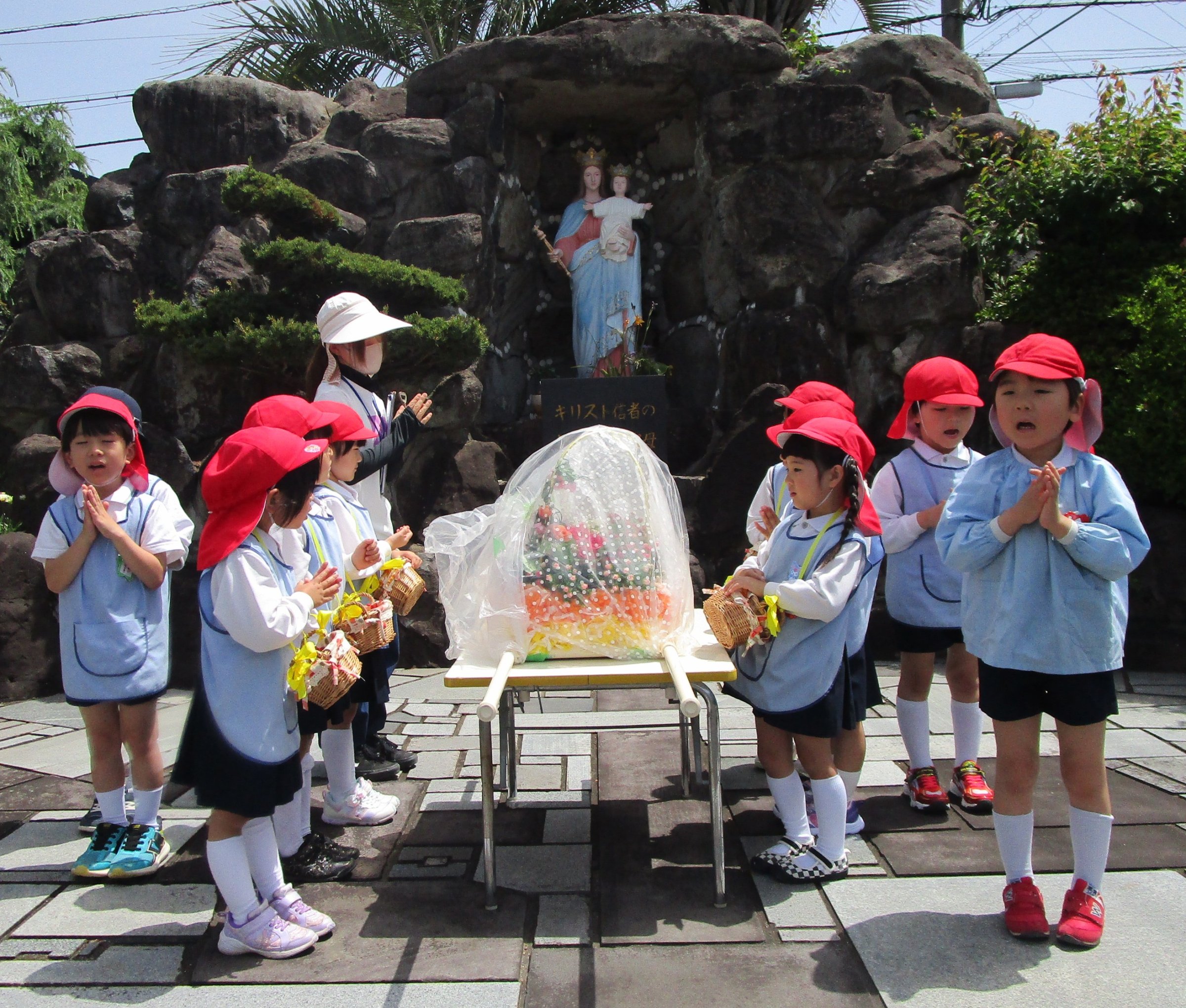 5月はマリア様の月。クラスでのマリア様への心の花束の約束事を意識して過ごす子どもたちの姿が見られます!