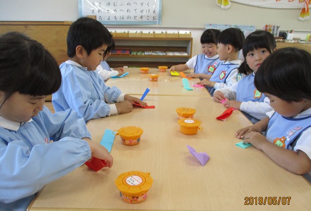 折り紙で折っているのは・・・お母さんへの『ハート』!!