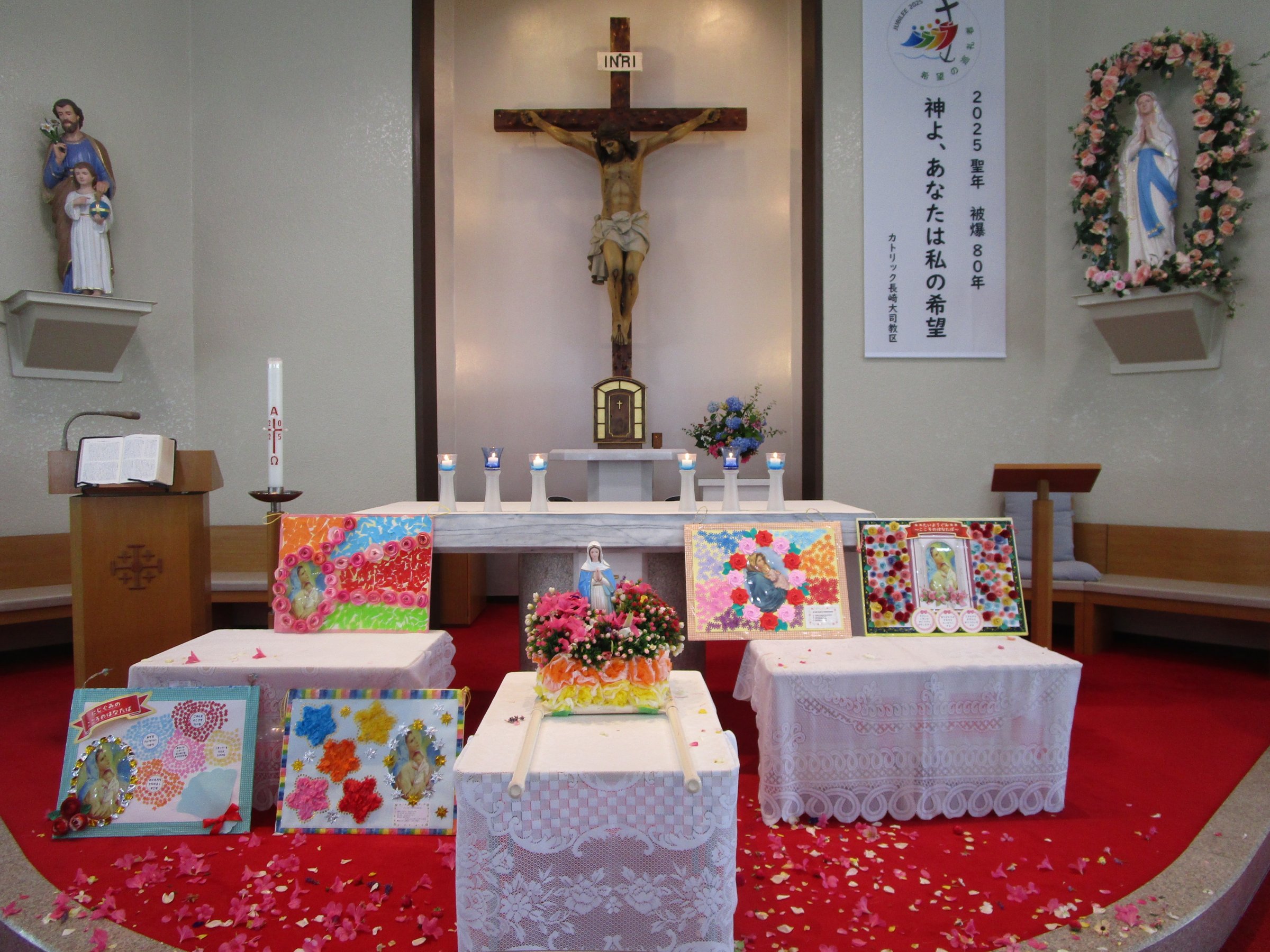 そして、教会に入り、各クラスの代表児がこの1カ月の取り組みをマリア様への心の花束としてお捧げしました♡