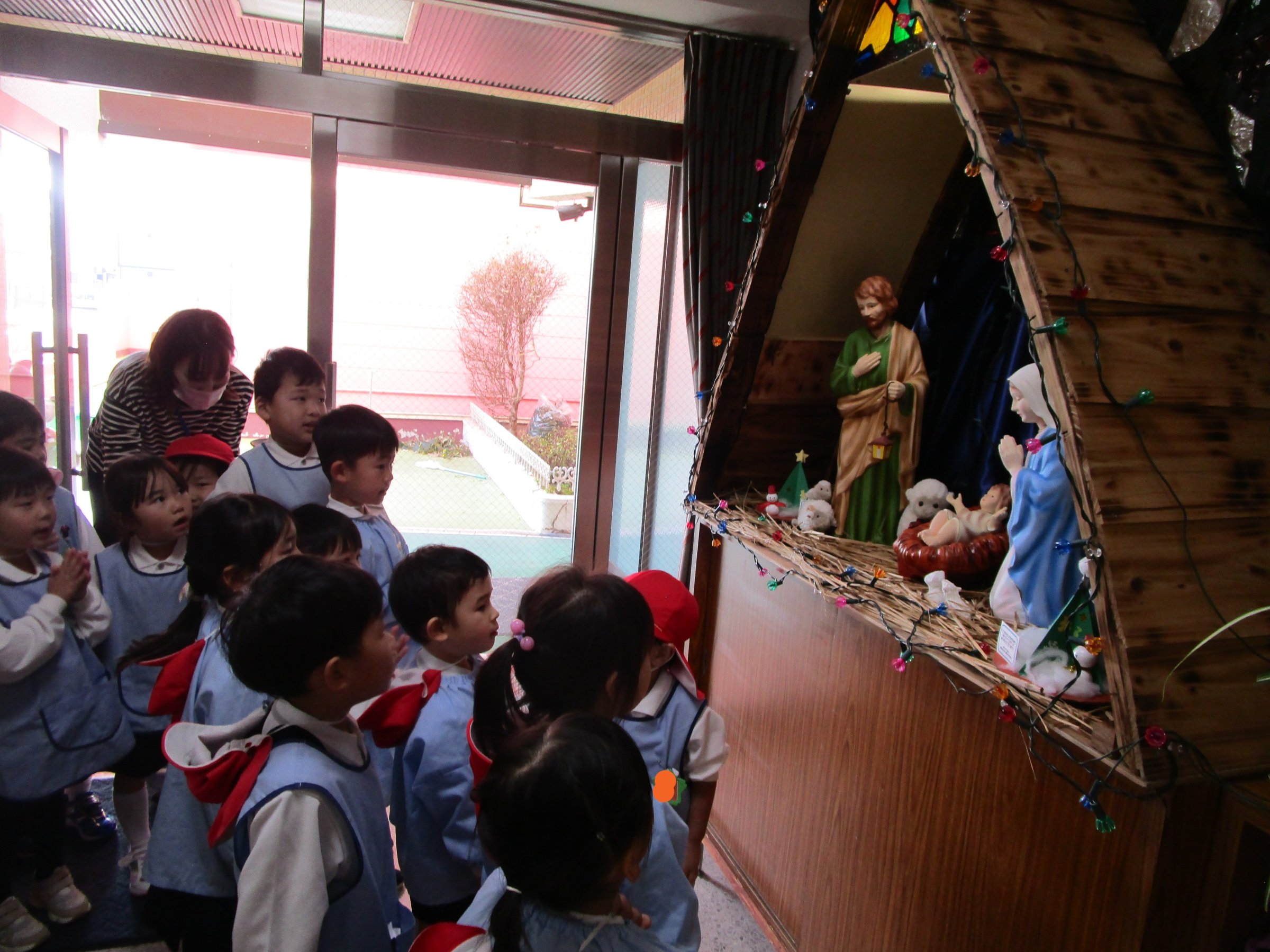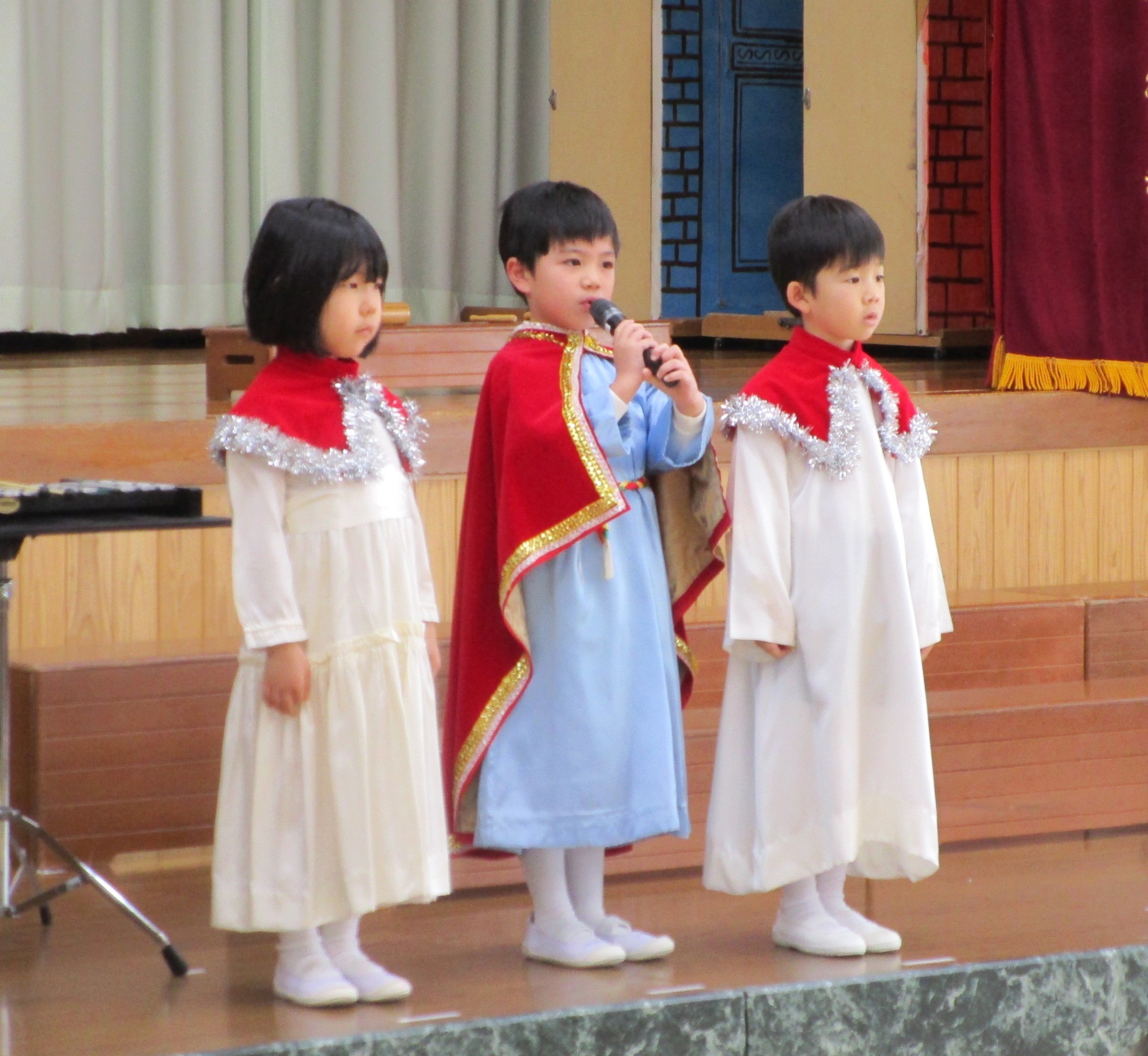 合奏や歌、お遊戯は、少し早いですが、イエス様のご誕生をお祝いするプレゼントとしてお捧げしました!