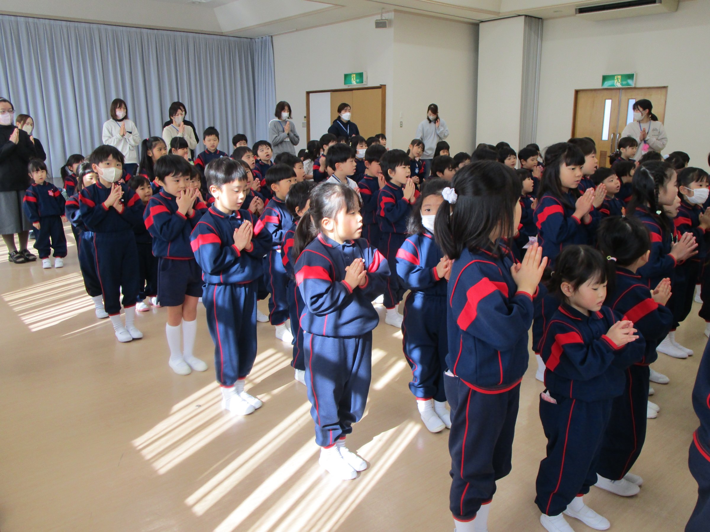 園長先生よりお話を受け、子どもたちもベルナデッタのように、戦争のない平和な世界になるように、アヴェ・マリアの祈りをお捧げしました。