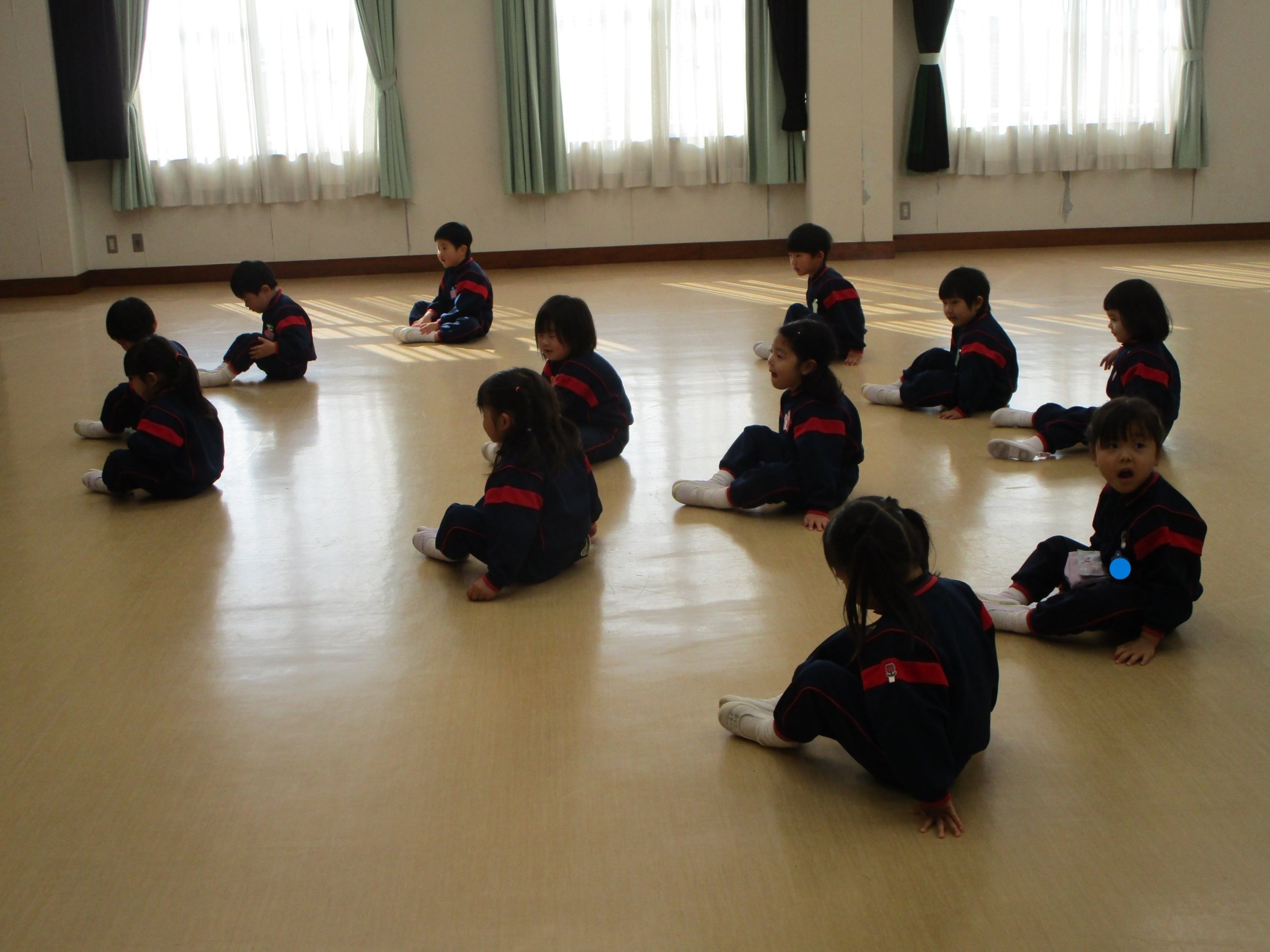 体操座りで、お話を聞いたり、