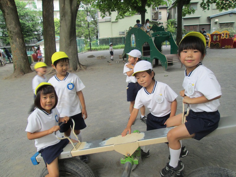 ブランコやシーソー、鬼ごっこと、みんなで楽しく遊んだよ