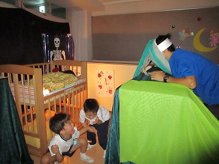 怖かったけど、お友達と一緒なら大丈夫!最後はおばけからプレゼントをもらってハイチーズ!