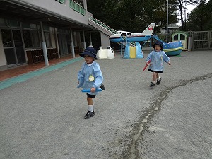 立つ、座る、手をつなぐ、回るなどの基本動作の英語を聞いて、体を動かしながら楽しんでいました。