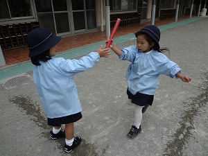 運動会が終わって、憧れのバトンを持って、男女対抗リレー!!