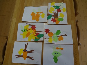 おうちから持ってきたシールをもみの木に飾って・・・。