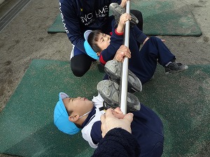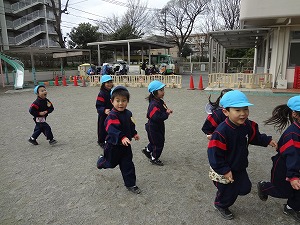 寒かったけれど、元気に体を動かして楽しそうに走ったり、跳んだりする子どもたち。