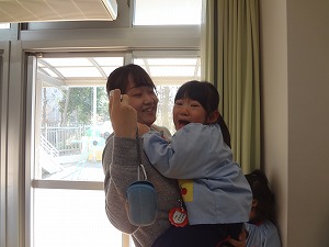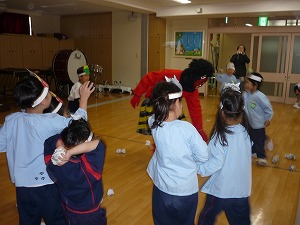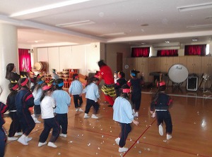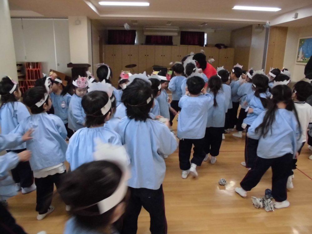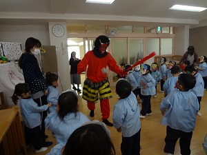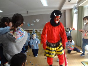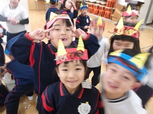 2月3日 学年ごとに豆まきを行いました(⌒∇⌒)