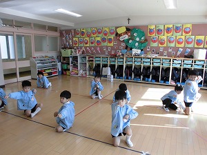 あかねすみれ組、年が明けて最初の体操はお天気にも恵まれ