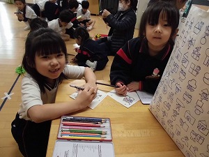 終わりの時間には先生とハイタッチ!