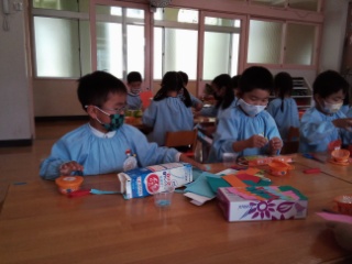 各クラスでこいのぼりの製作と新聞紙でかぶとを作りました。