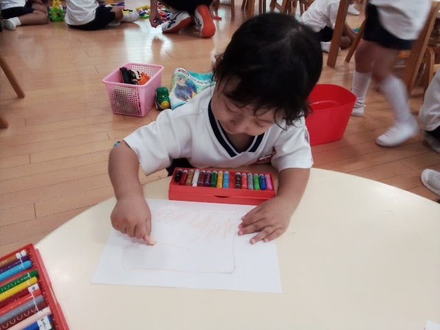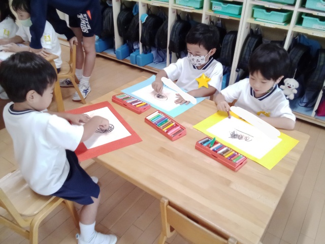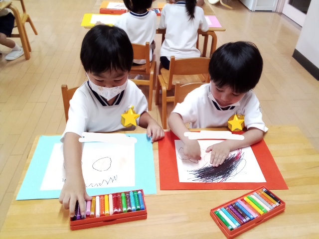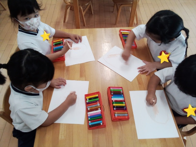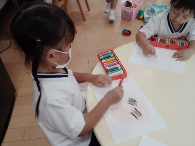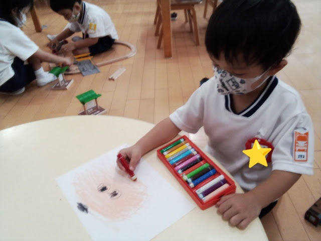 「上手にお顔描けるかな~??」 「にっこりしているお口にしたよ!」