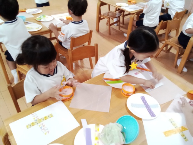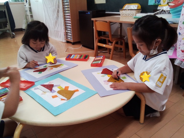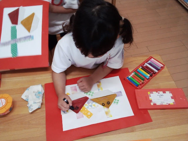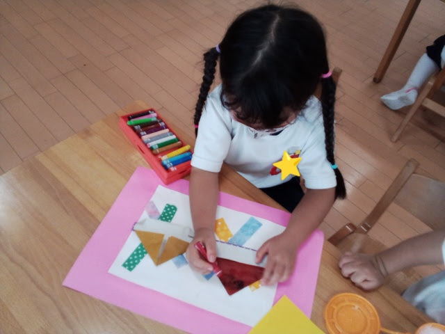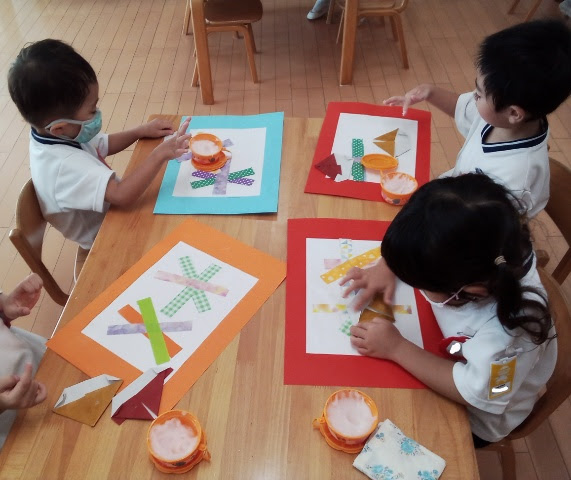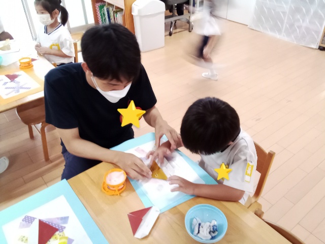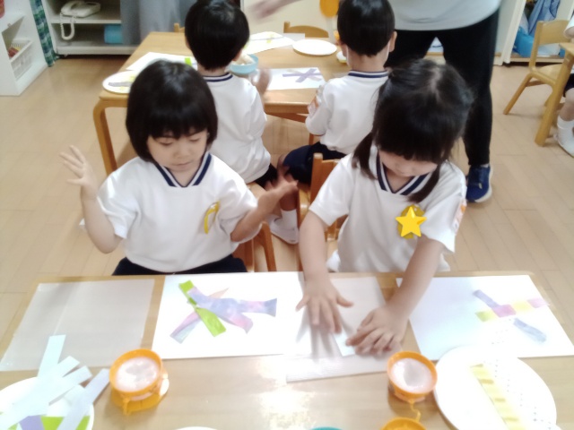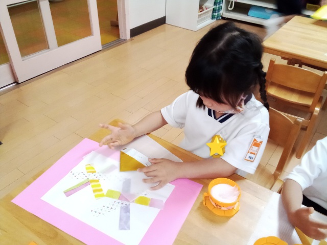 栗の「いが」の形を作るのに苦戦していたけれど、見本を真似ながら上手に貼れました!