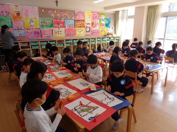 ひめゆり組とさゆり組は、1月の製作『書初め』本物の墨で描きましたよ~