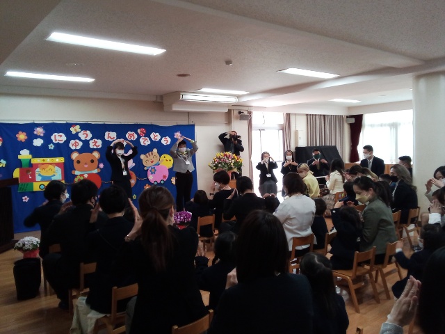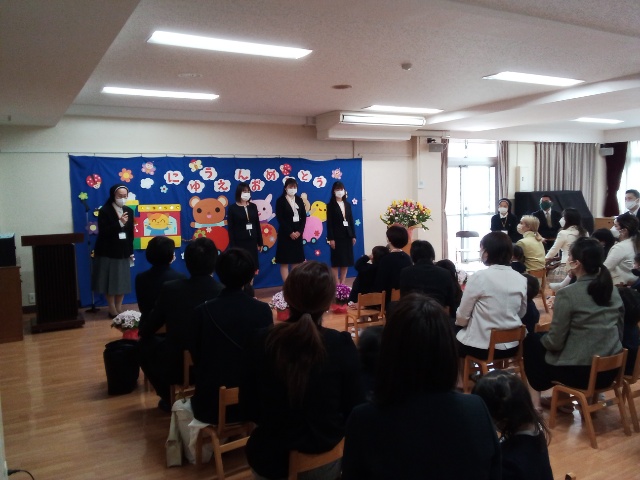 先生やお家の方と一緒に手遊びをしてから入園式が始まりました。