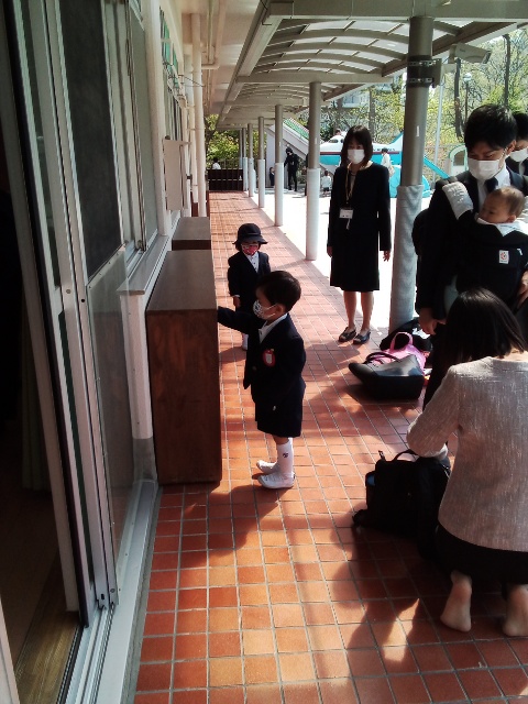 お家の方と一緒に新しいお部屋へ……上履きも自分のところへきちんと入れられるようになりました。ホールではお母さんと一緒に記念撮影(*^▽^*)