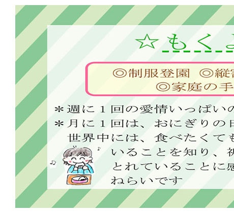 | 8:30~9:00 | 歩きコース 順次登園(登園後、出席カードにシールを貼る) |