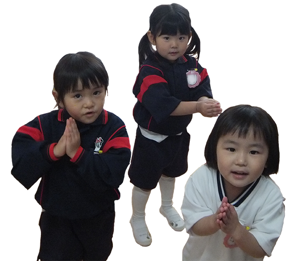 - 朝の登園時、活動の前に、食事の前後に、お帰りの前に…子どもたちは手を合わせ、心を神様に向けて祈りを捧げます。祈りとは感謝、賛美、願い、神様との語らいです。子どもたちは祈る中で神様の愛に触れ、かけがえのない自分のいのち、友だちのいのちを感じ、優しさや思いやりの心を育み、与えられた全てのものに感謝するようになります。