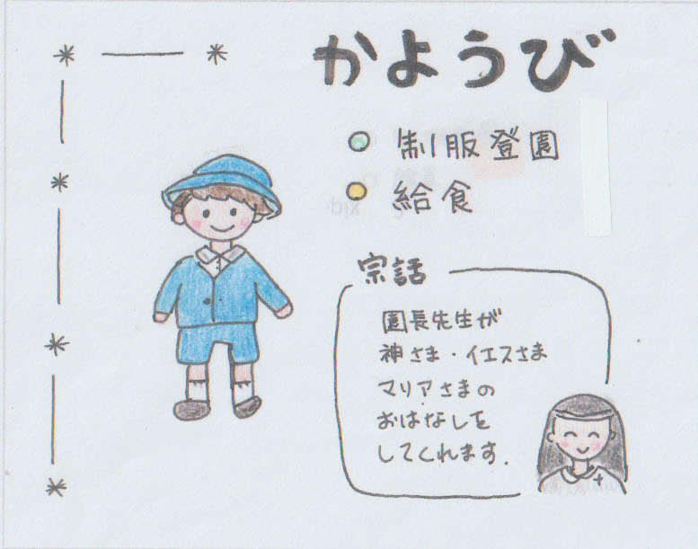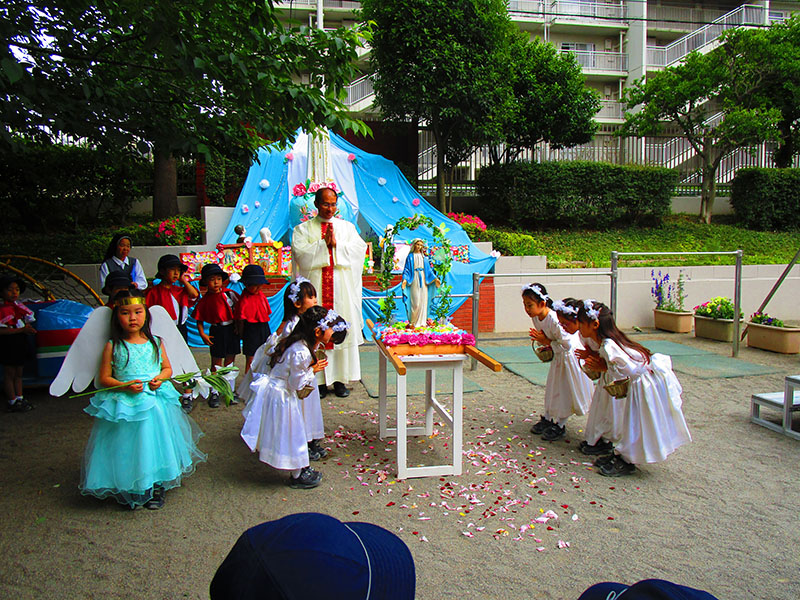 かけがえのない存在として、その人格を尊重し、調和のとれた 人格の基礎を形成することを目的としています。さらに幼稚園教育要領、学校教育法に則り、幼児の健やかな成長のために様々な環境を与えながら、ドン・ボスコ教育法による「心の教育」に力を注いでいます。