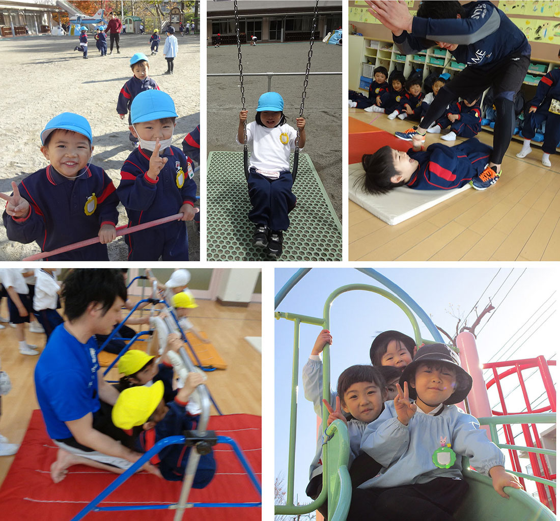 広い園庭、充実した遊具の中で元気いっぱい遊びます。