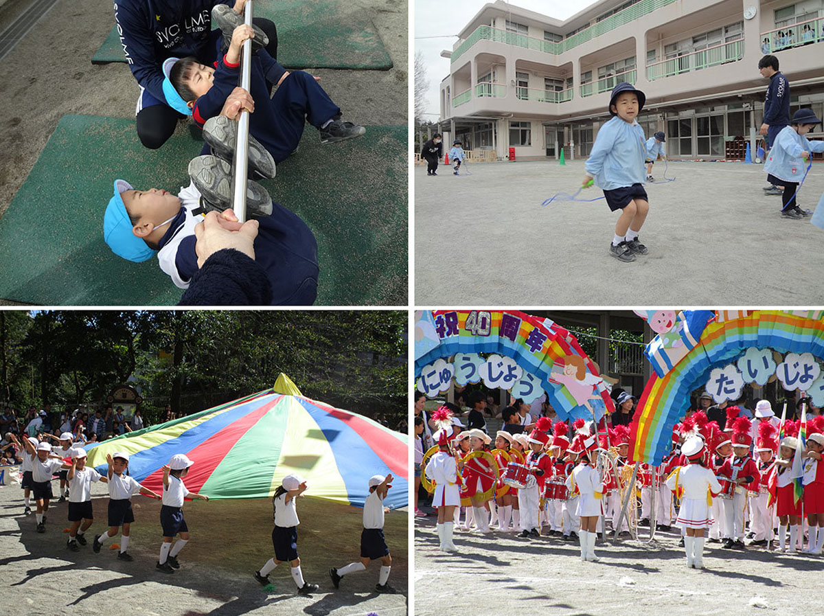 - 鉄棒や縄跳びを出来るようになるまで挑戦し、その中であきらめない心も培います。10月には運動会があり、保護者の皆さんに頑張る姿、成長した姿を感じていただけます。