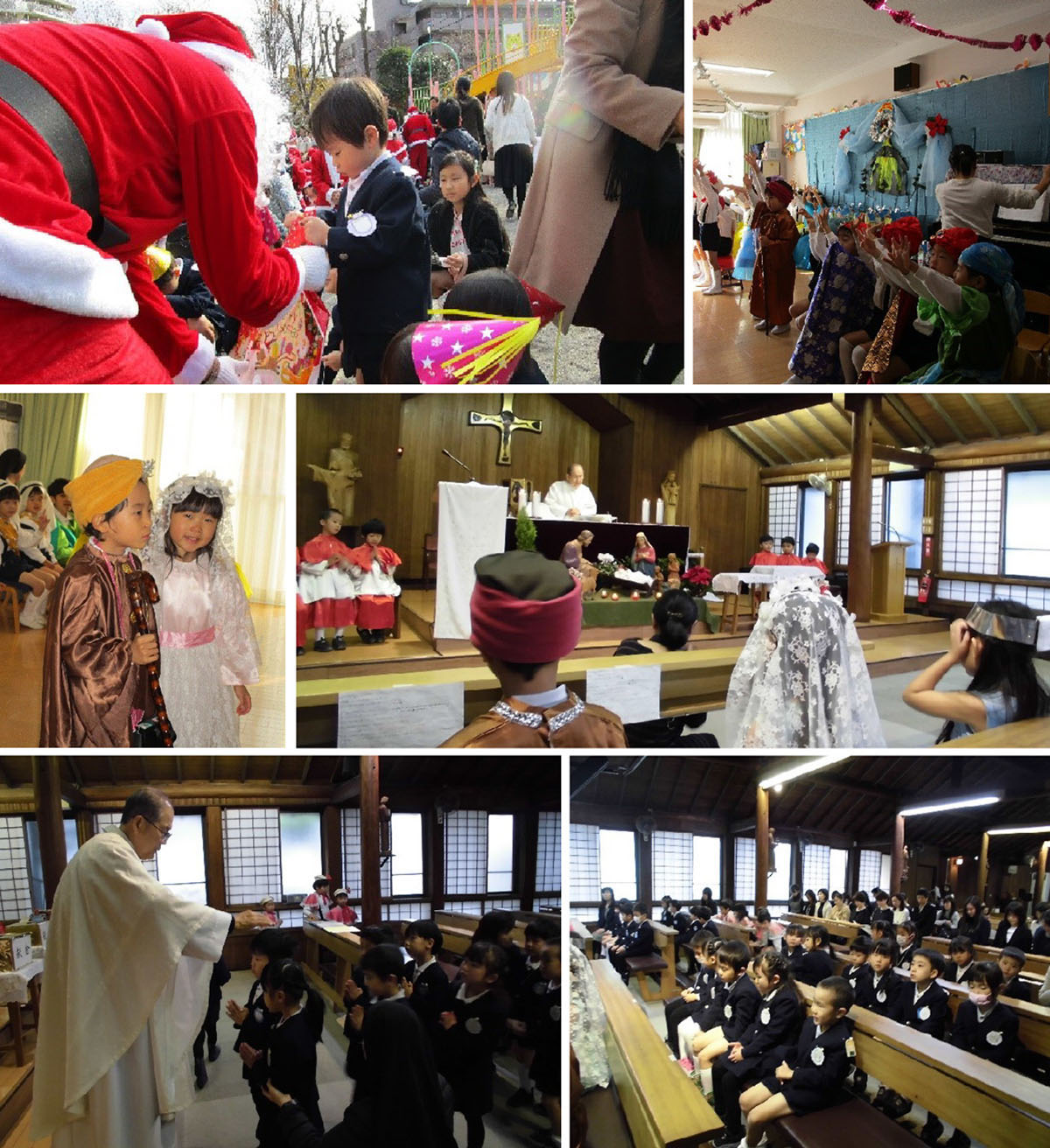 イエス様の誕生をお祝いします。年長児は、イエス様の降誕劇を演じることで、クリスマスの真の意味を理解していきます。