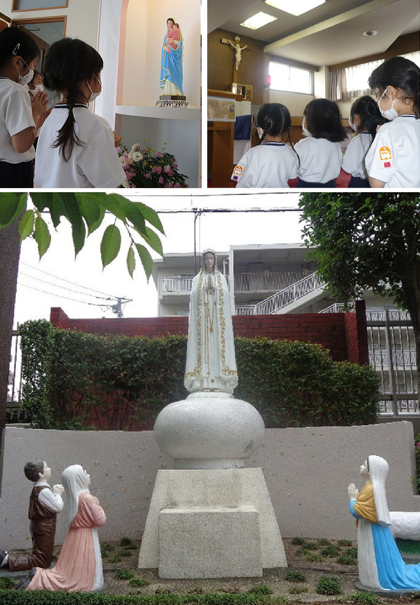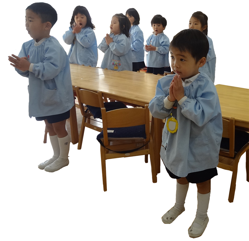 子どもたちは毎朝、神様とマリア様にお祈りをして1日を始めます。神様のお話を聞いたり、聖堂(お祈りの部屋)へお祈りに行ったりすることで、神様のやさしさを身近に感じ、神様の愛の中でのびのびと遊んでいます。